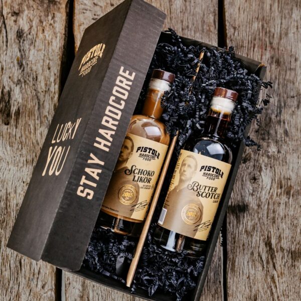 Süß trifft schokoladig: Im Geschenkset warten der buttrig-karamellige Butterscotch Likör und unser vollmundiger Schokolikör. Zwei Geschmacksbomben, die sich perfekt ergänzen – karamellweiche Wärme auf der einen Seite, volle Schoko-Power auf der anderen. Ideal für alle, die sich nicht festlegen wollen. Zwei Sorten, zwei Vibes, ein Set mit Abhängigkeitsfaktor.
